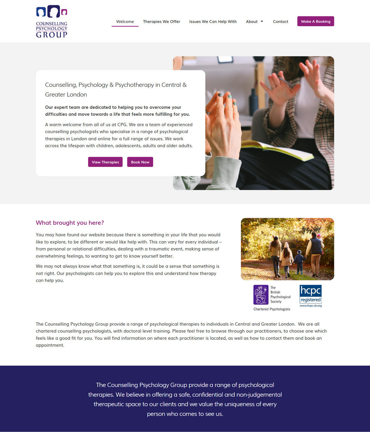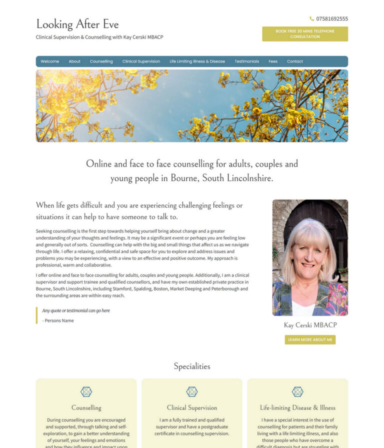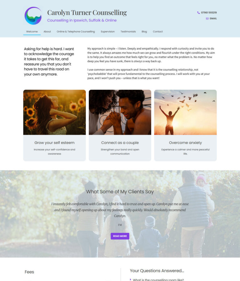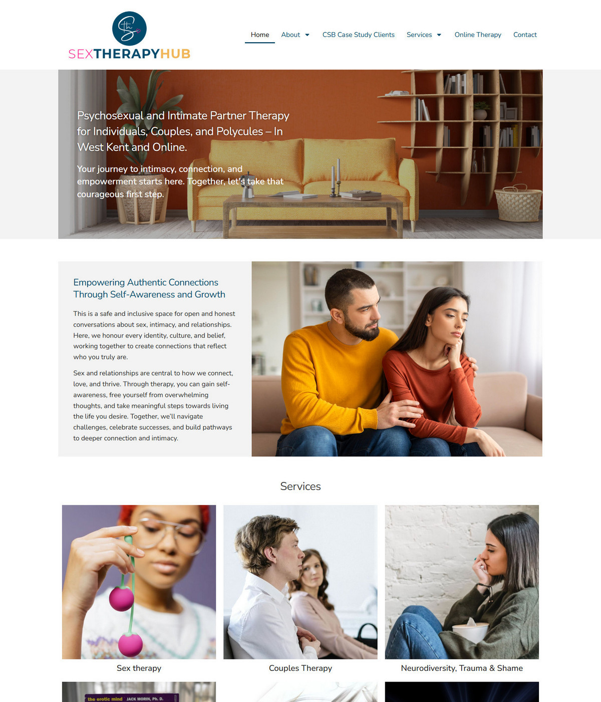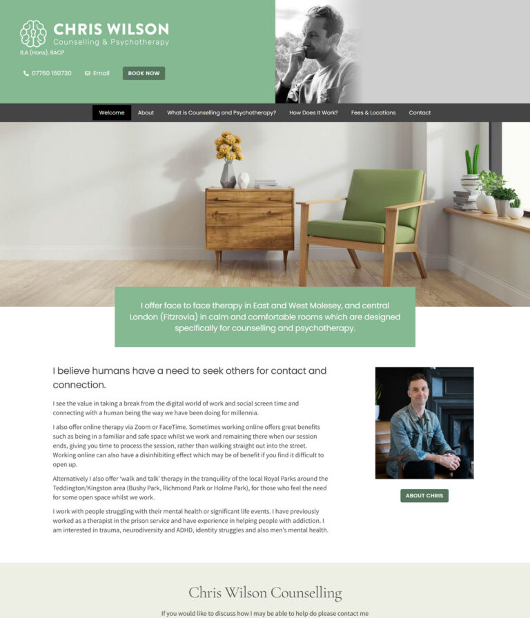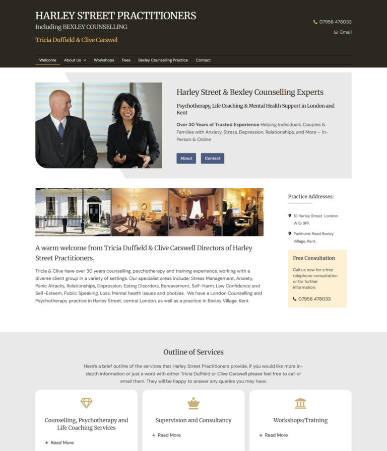 Service-led layouts that clearly explain approach, specialisms and session format.