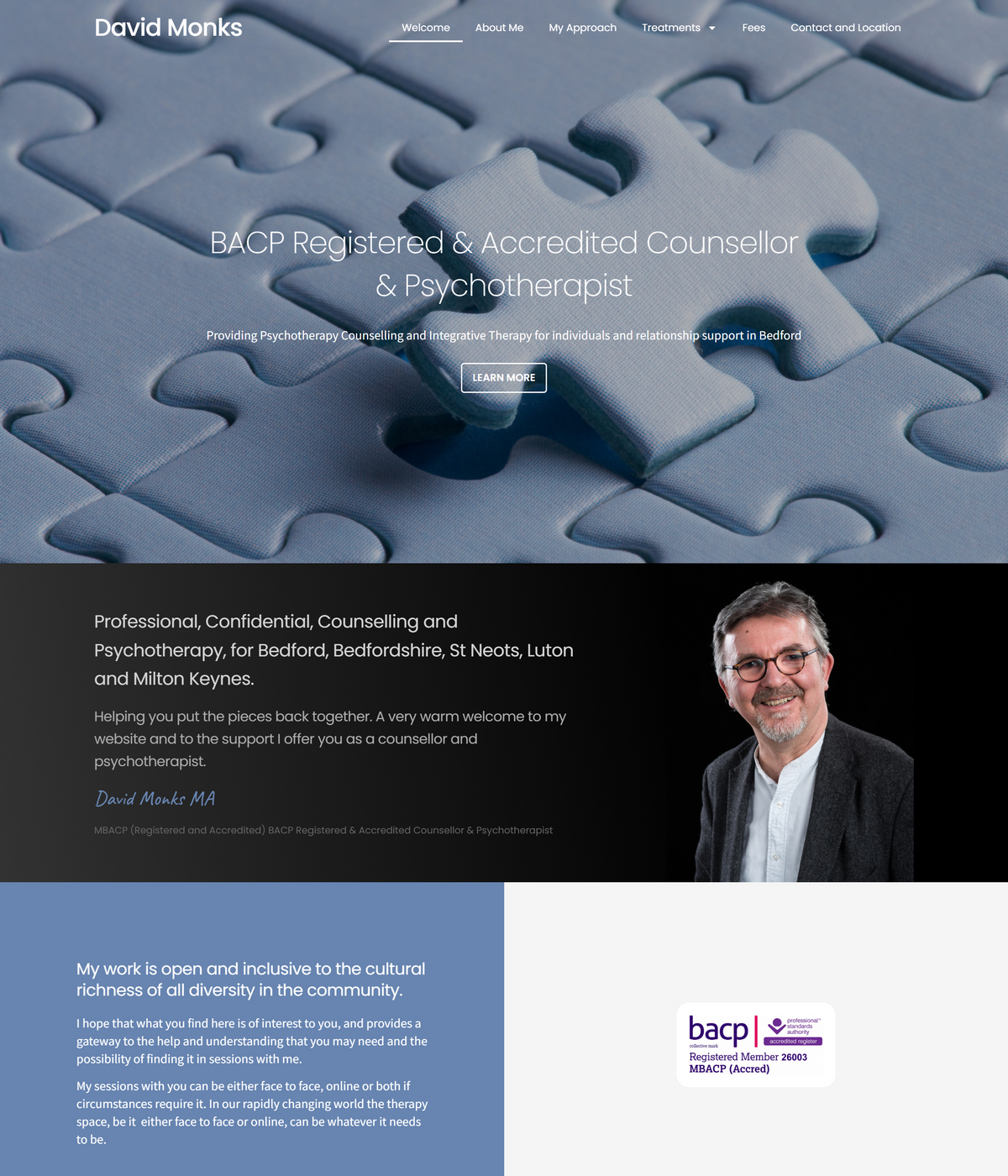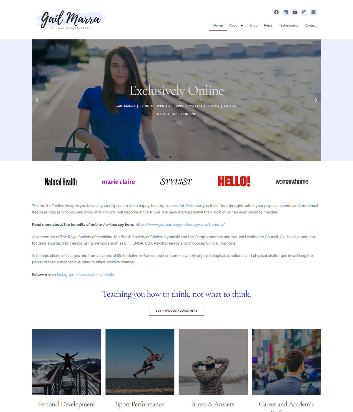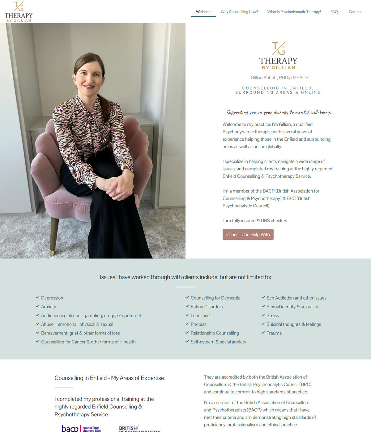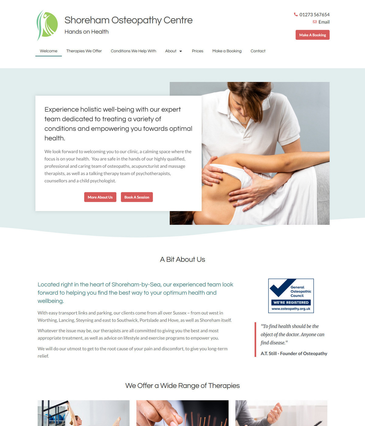 Service-led layouts that clearly explain approach, specialisms and session format.